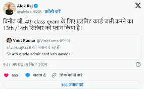 राजस्थान कर्मचारी चयन बोर्ड (RSSB) द्वारा Rajasthan 4th Grade Admit Card 2025 को जारी करने के लिए बड़ी खुशखबरी निकल कर आ रही है क्योंकि राजस्थान कर्मचारी चयन बोर्ड के अध्यक्ष श्री आलोक राज जी ने राजस्थान चतुर्थ श्रेणी भर्ती परीक्षा 2025 के प्रवेश पत्रों पर बयान दिया है उन्होंने सोशल मीडिया एक्सपर्ट ट्वीट करते देखा कि राजस्थान चतुर्थ श्रेणी कर्मचारी भर्ती प्रवेश पत्र 14- 15 सितंबर 2025 को जारी किए जाएंगे।